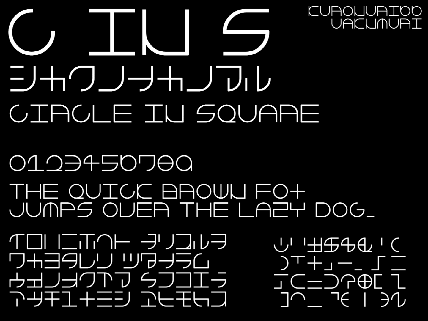このフォントは、「四角のなかの円の中の十字」がテーマのフォントです。